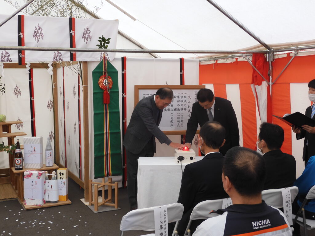 同事業用のガスエンジン発電設備は、火入れ式に先立って既に稼働を開始しておりますが、この度、工業団地内の組合各社や関連企業が参加して、改めて式典が催されました。